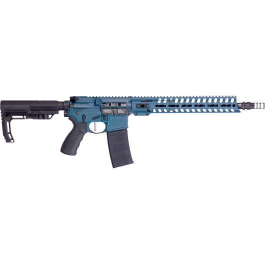 The 13.75 Wonder Rifle is our answer to a lightweight carbine with just the right amount of upgrades. The Wonder provides a beautiful balance between utility and luxury. It features our ambidextrous rear sling mount, Renegade Rail with patented heat sink barrel nut, roller cam pin, single stage straight match grade drop-in trigger, Strike Eagle ambidextrous charging handle, and features a muzzle brake. The Blue Titanium Cerakote not only provides protection from the elements; it also ensures you’ll stand out at the range or in the field. The Dead Air KeyMo Muzzle Brake is pinned and welded to make the barrel 16.1″ in overall length.