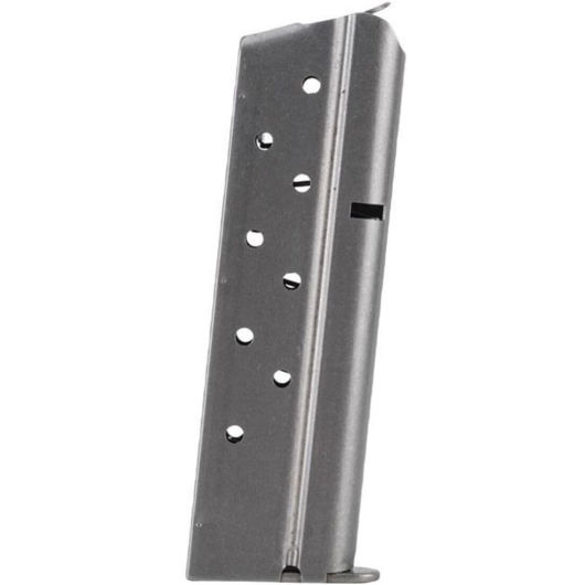 This stainless 9mm magazine is designed for Kimber Custom and Pro models