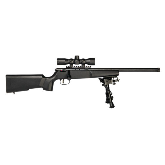The industry’s safest micro rimfire has come of age—and it’s ready to shoot, right out of the box. The Rascal Target XP comes with a mounted and boresighted 4x32mm scope, as well as a bipod sling swivel stud mount. It’s built for accuracy and adaptability, thanks to a precision hardwood stock, heavy 16 1/8-inch barrel, one-piece Picatinny rail and threaded (1/2-28) muzzle. Like the original Rascal, the single shot rifle cocks by lifting the bolt and unloads easily—without pulling the trigger. The design also builds superior shooting skills thanks to full-size rifle features, including Savage’s user-adjustable AccuTrigger™ system. The platform offers far better safety, functionality and accuracy than competing designs.