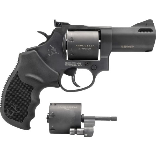The 7-shot Taurus Multi-Caliber 692 revolver is designed for reliable everyday carry with its 3-inch barrel, and also offers a range-friendly option in the 6-1/2-inch model. Both size variations offer the ability to change the caliber from 38 Special +P/357 Magnum, to 9mm Luger with a simple swap of the cylinder. This DA/SA revolver features a seven round capacity, making it an ideal companion for personal and home defense as well as simply shooting more rounds at the range. The 692 revolver has adjustable rear sights, spurred hammer and Taurus’ Ribber Grip® that aids in accuracy. The ported barrel manages recoil for quicker target re-acquisition. Stellar clips are provided with each revolver.