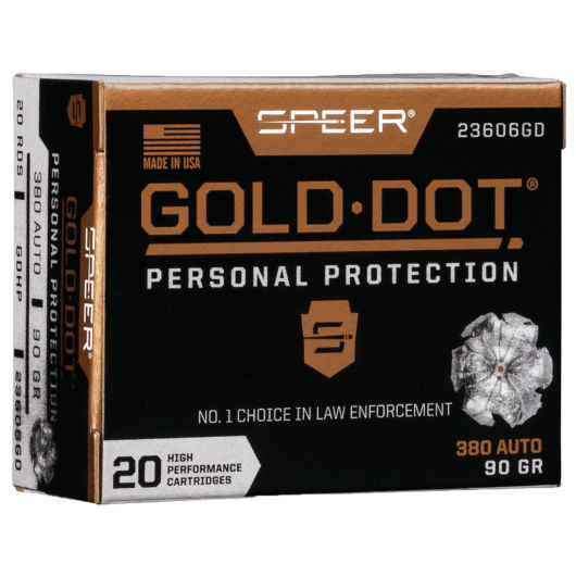 Our original Gold Dot line remains a benchmark for both self-defense and duty use, and it’s earned the trust of law enforcement world-wide. It features a pressure-formed lead core that’s bonded to an extremely uniform jacket a single atom at a time. This virtually eliminates separation on impact for more retained weight and penetration to crucial depths. Its Gold Dot hollow-point design expands consistently through the full range of barriers. Ignition and cycling are guaranteed thanks to sealed primers and nickel-plated brass.