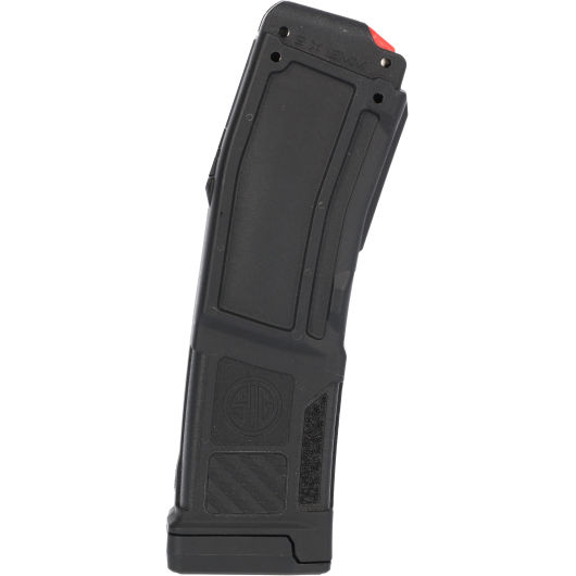 The SIG SAUER enhanced factory MPX 20-round 9mm magazine combines the best of metal and polymer designs. It features metal feed-lips for enhanced durability and a robust yet lightweight polymer body for shape retention. The SIG SAUER MPX Magazine is the result of a 2-year design project to create a magazine that met all of the SIG quality and reliability standards while providing even higher performance in the MPX platform.