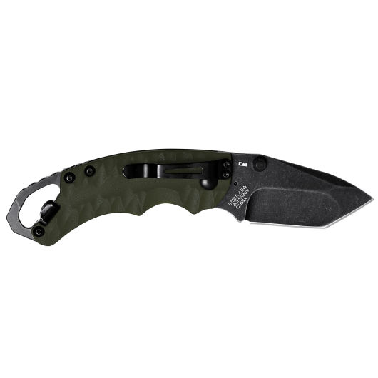 The Shuffle II goes bigger and brawnier. It offers a bigger blade and a longer handle, yet it has the same multifunctional flexibility and value pricing that made the Kershaw Shuffle so popular. But the Shuffle II’s look is very different from the Shuffle. With a tanto blade, strongly textured handle, and BlackWash blade finish, the Shuffle II has a very substantial look and feel. It’s sturdy glass-filled nylon handle in attractive olive green, the Shuffle II is ready to handle any task indoors, at work, or in the out of doors.
