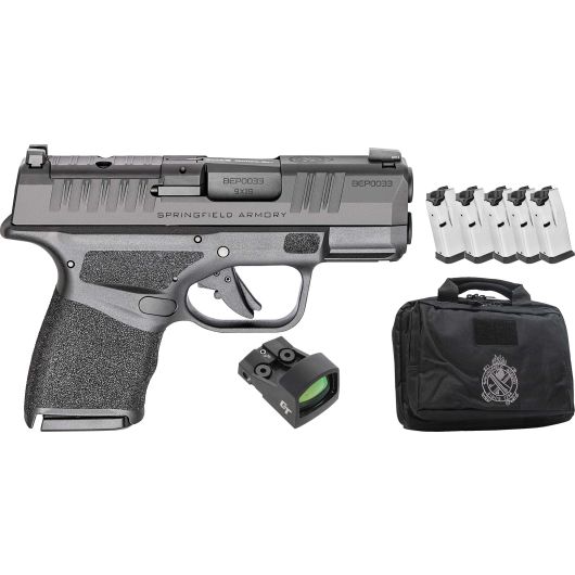 The Springfield Armory® Hellcat® raises the bar on concealed carry pistols with service pistol comfort, capacity and accuracy in a remarkably compact chassis. Offering 10-rounds of 9mm capacity, the Hellcat OSP™ has its billet-machined slide cut to accept a micro red dot sight. Premium features like a 3″ hammer-forged Melonite®-coated 1:10″-twist barrel and slim 1″ width define the Hellcat®.