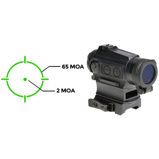 Reticle: Green 65 MOA Circle/2 MOA Dot