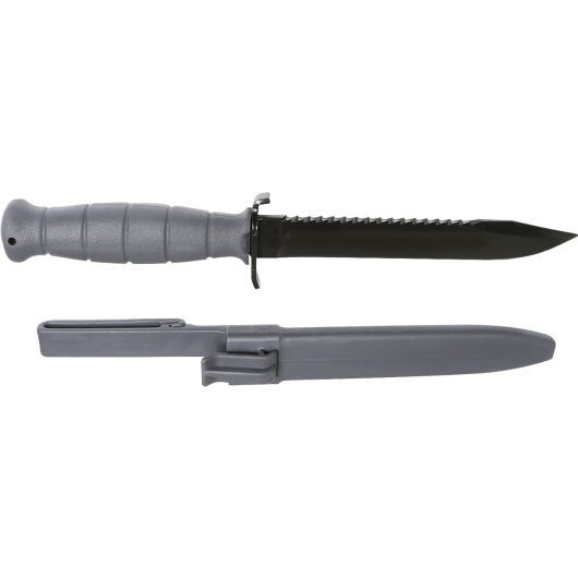This saw back survival knife is a perfect addition to any tool kit, field pack or belt. Developed in close cooperation with Austrian Army Rangers, the no-nonsense GLOCK knife features a tough 6 1/2 inch carbon steel clip point blade and molded polymer hilt, tough enough to break windows or cut through the toughest tree limb, yet perfectly balanced for appropriate conditions. The one-piece polymer sheath is ideal for keeping the 3/16 inch blade protected. The set includes an integral retention system to keep your GLOCK knife secure during times of extreme activity.