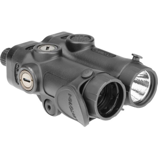The LE321-GR is a Titanium bodied multi- laser aiming device. Includes class IIIA visible green laser, class 2M IR laser, and IR Illuminator coaxially mounted for easy zeroing. Also features a 300 Lumen white light, IR Illuminator focus adjustment, quick release picatinny rail mount, remote pressure switch, and IPX8 water resistance.