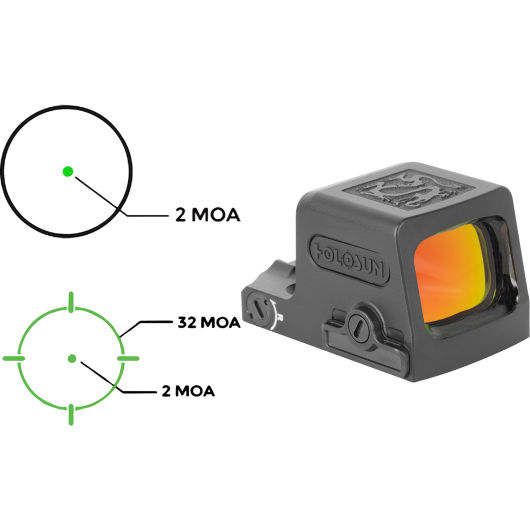 EPS Carry–GR-MRS has Holosun’s 540nm Green Super LED with Holosun’s MRS (Multi-Reticle System) and uses a 1620 battery which provides up to 50k hour battery life, Solar Failsafe, and Shake Awake technology. EPS Carry-GR-MRS is compatible with popular subcompact pistols including G43 MOS, G48 MOS, Hellcat, P365 X/XL, and more.