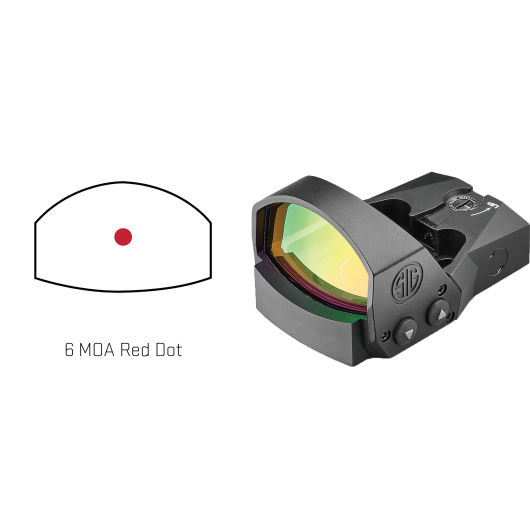 – 3 or 6 MOA red dot with multiple brightness settings for rapid target engagement under a full range of lighting conditions