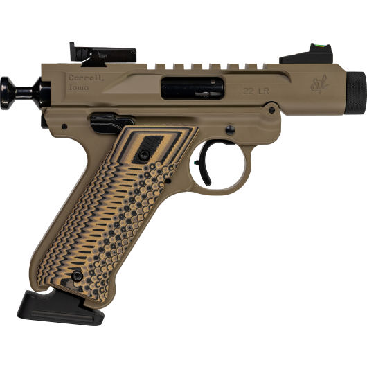 The Black Mamba build utilizes a polymer Ruger MK IV 22/45 frame that has been retrofitted with our Accurizing Kit to provide a crisp, clean, 2.25 lb trigger pull. The frame has also been fitted with our magazine release that, when used in conjunction with our magazine base pads (included standard), eliminates feeding issues. This is accomplished by raising the magazine’s position in the frame, allowing the bolt to more positively engage each round as it feeds.