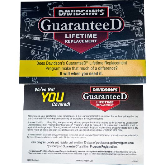 Features: 10 Pack of Warranty Cards | Davidson’s GuaranteeD | Lifetime Replacement Program | For Consumers