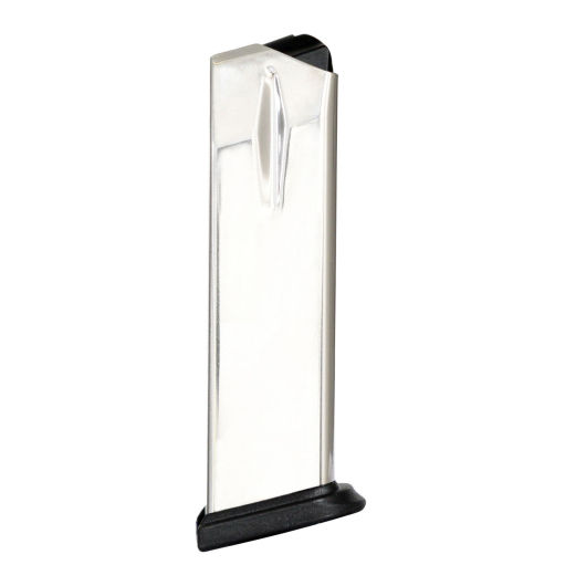 The 12-round magazine for the XD features stainless steel construction for durability, numbered round count witness holes and a black polymer follower. The magazine’s black polymer butt-plate fits flush with the pistol’s polymer frame.